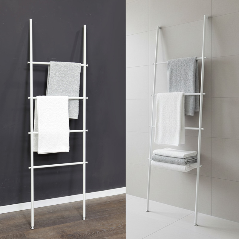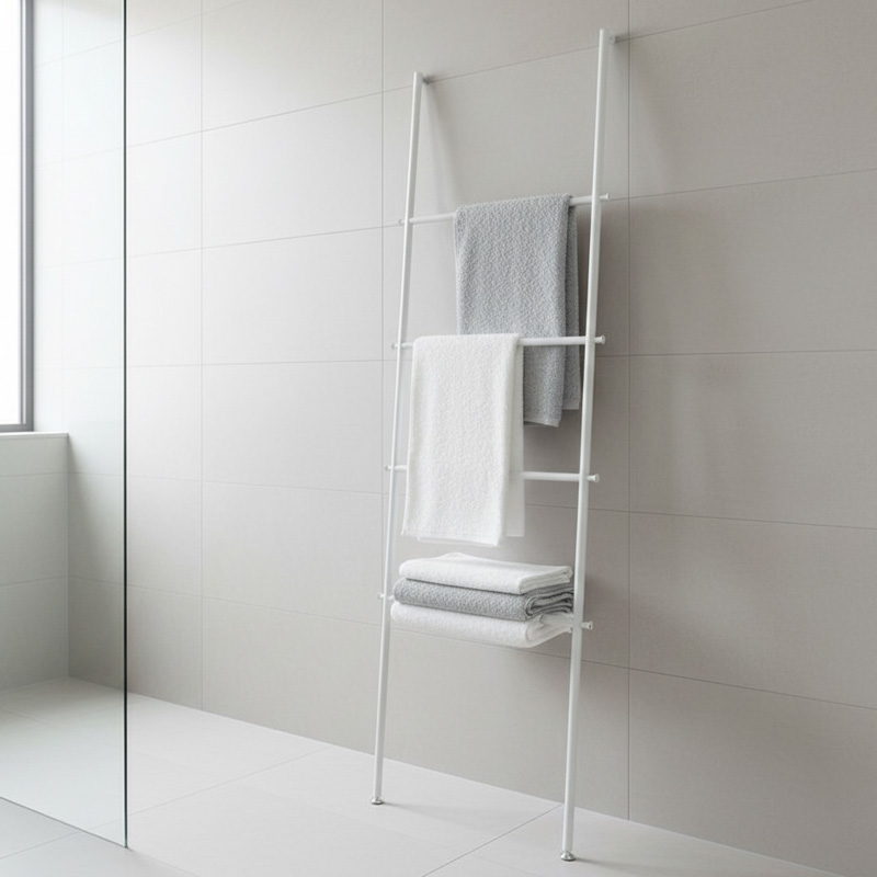 סולם לאמבטיה להנחת מגבות עם ארבעה שלבים בגימור לבן