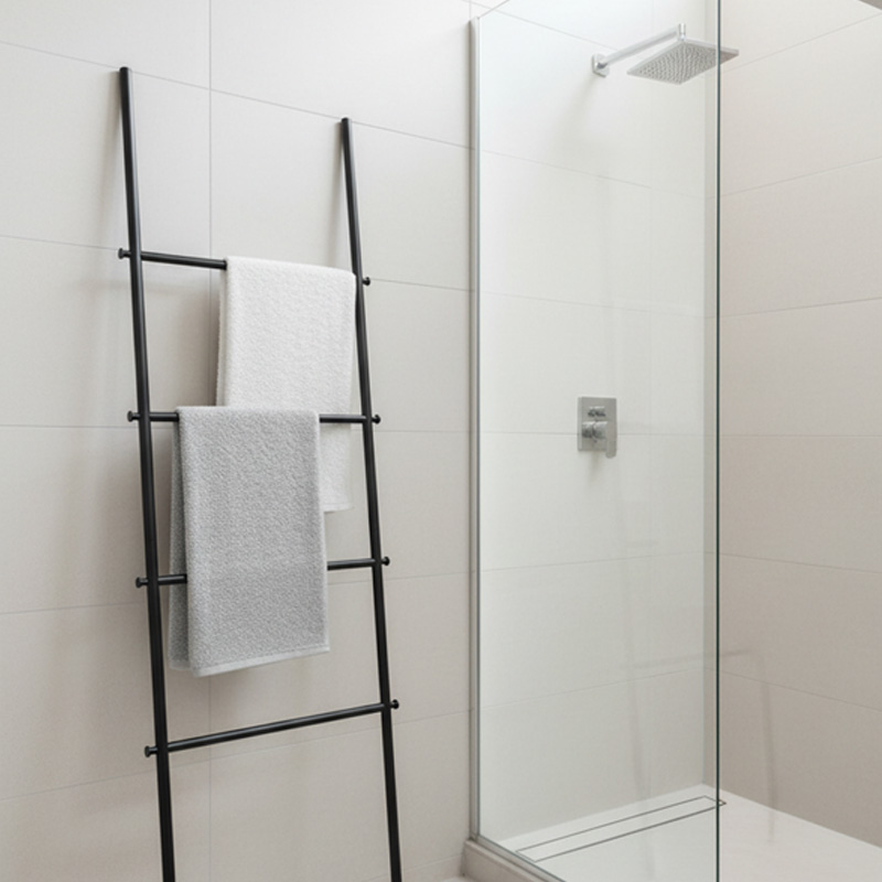 סולם לאמבטיה להנחת מגבות עם 4 שלבים בגימור שחור
