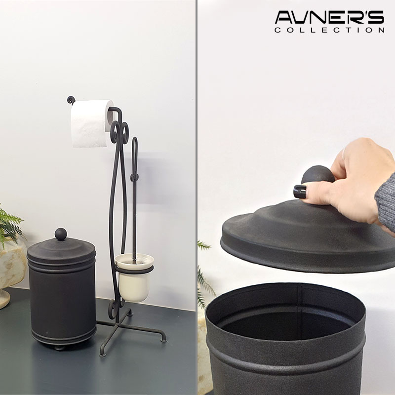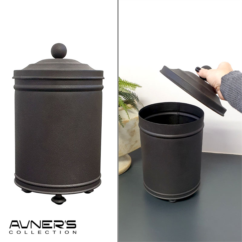 - פח אשפה מעוצב 5 ליטר עגול עבודת יד שחור חולי