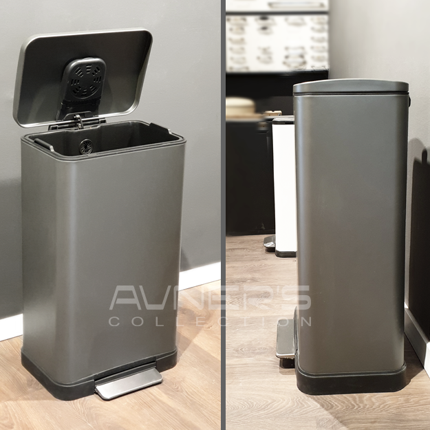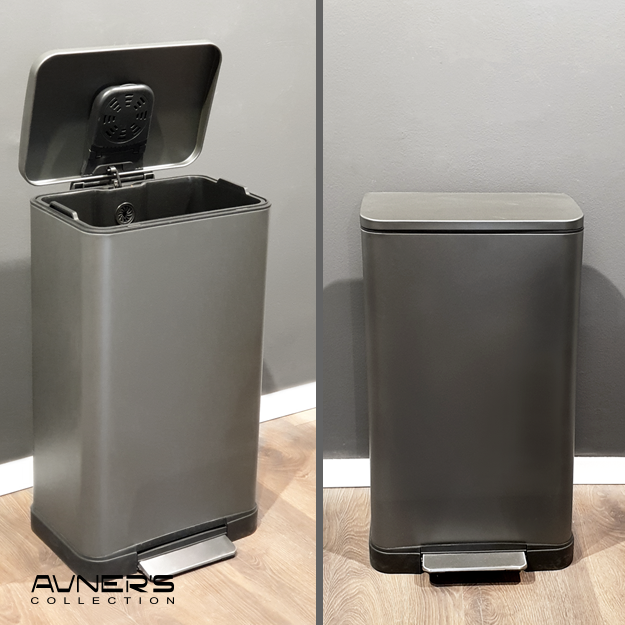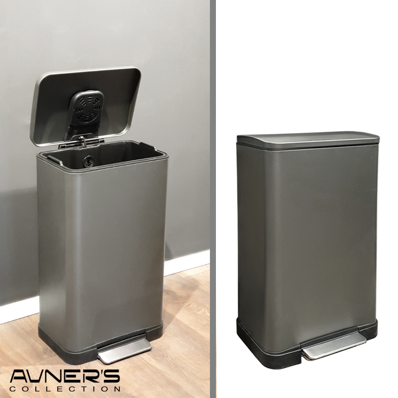 פח אשפה 45 ליטר מלבני למטבח גרפיט סגירה שקטה