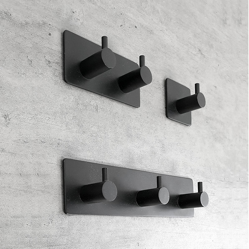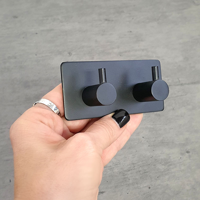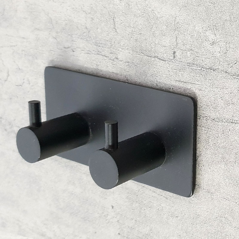 קולב זוגי למגבות 6102BL שחור ללא קידוח בהדבקה