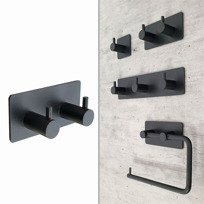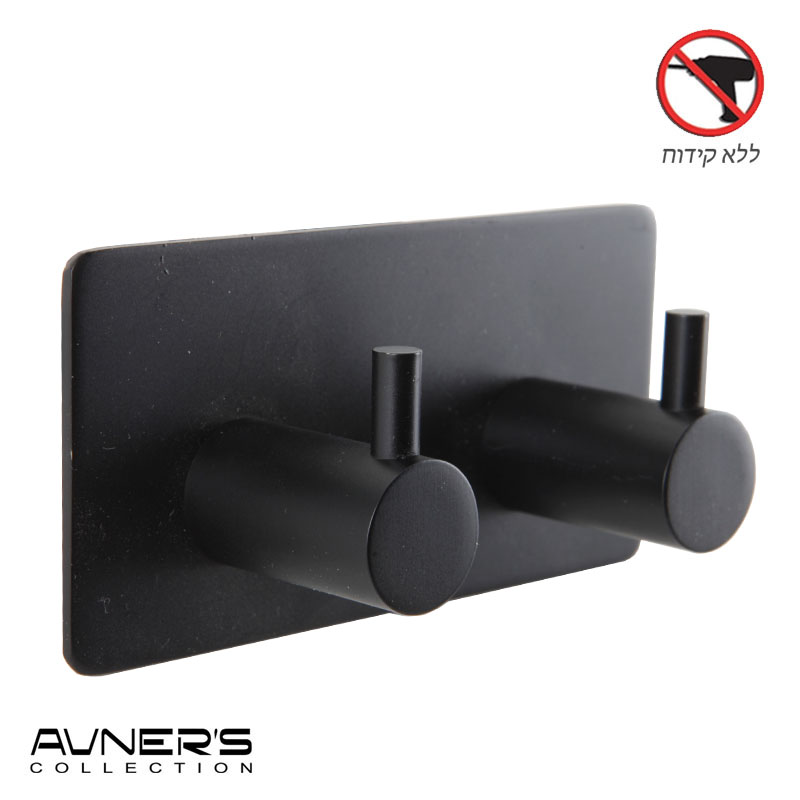 - קולב זוגי למגבות 6102BL שחור ללא קידוח בהדבקה