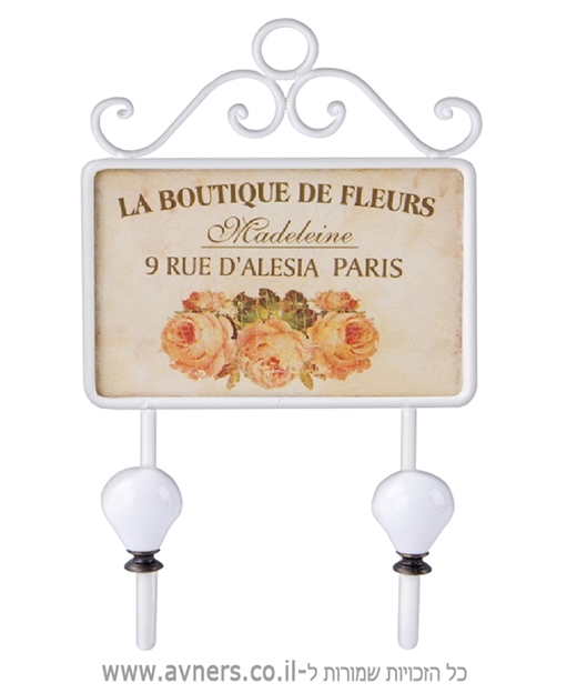 קולב כפול למגבת אמבטיה וינטג' פרחוני דגם לואיז