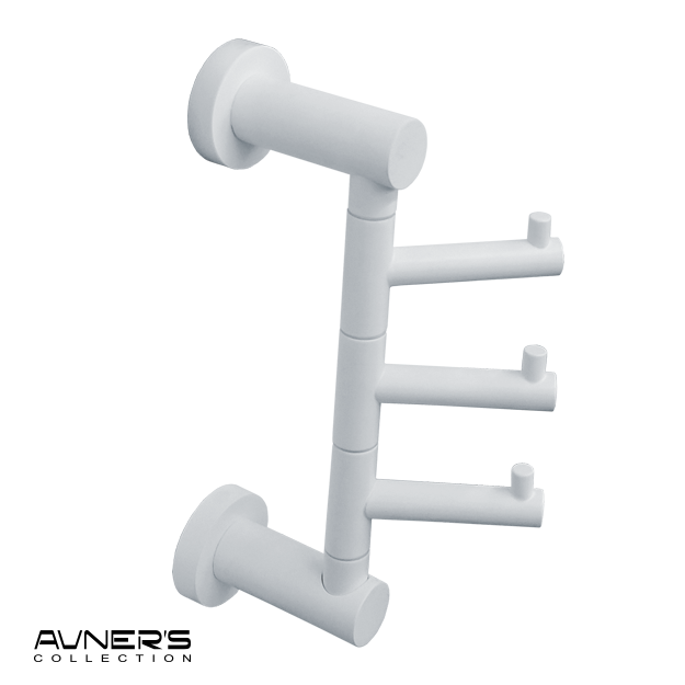 קולב 3 ווים למגבות אמבטיה ROUND לבן