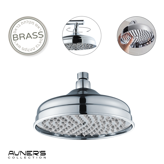ראש גשם עגול יוקרתי 20 ס״מ רטרו ניקל מבריק